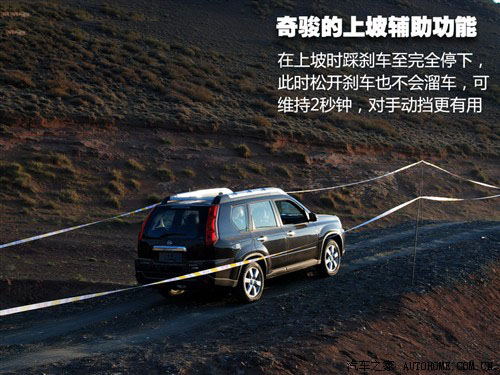 另外,奇駿在三款2.5車型上,都配備了上坡和下坡輔助系統(tǒng),上坡輔助是指在坡上車輛停下時,松開剎車會保持2秒鐘的時間不溜車,給手動擋用戶更多的反應(yīng)時間;下坡輔助是指下坡時車輛自動保持7km/h的速度下行,駕駛者只需控制好方向盤。這兩項功能大大降低了越野的駕駛難度,為使用越野車不多的駕駛者提供了輕松愉快的駕駛環(huán)境。