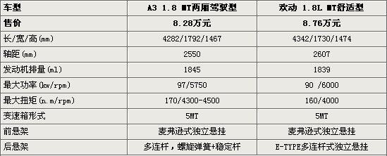 奇瑞A3兩廂(參數(shù)配置)的整車長度雖然不及歡動,但1792mm的車寬也使其內(nèi)部寬度更加寬敞。而海馬歡動(參數(shù)配置)擁有2607mm的軸距,后排的總體空間應(yīng)該更優(yōu)于奇瑞A3。這兩款車都搭載1.8L發(fā)動機(jī),奇瑞A3 1.8L的最大功率達(dá)到97千瓦,4300轉(zhuǎn)的時候也可以有170牛.米的扭矩,在動力方面比歡動更有優(yōu)勢。
