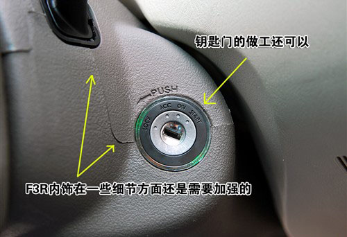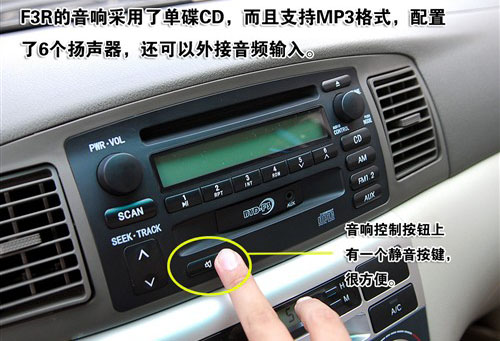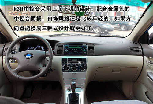 F3R的中控臺(tái)與花冠的設(shè)計(jì)很相似,上深下淺的設(shè)計(jì),中控臺(tái)與車內(nèi)扶手處采用了銀灰色裝飾板,總體風(fēng)格感覺(jué)溫馨中又透出一絲的運(yùn)動(dòng)。