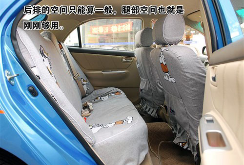 比亞迪F3R的頭部空間不錯(cuò),前后排乘客的都有很好的照顧;腿部空間方面前排還不錯(cuò),后排就比較局促,只能算剛剛夠用。