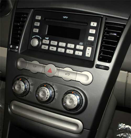 中控臺的采用直瀑式造型,布局層次感很強,大量的鍍鉻按鍵既錯落有序,一目了然,又頗具科技感,其次用料和做工也很顯檔次,而儲物盒、CD盒等細節(jié)之處又體現(xiàn)了細膩人性的一面。