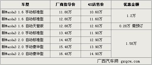 據(jù)長(zhǎng)安馬自達(dá)4S店銷(xiāo)售人員介紹,目前馬自達(dá)3全系車(chē)型優(yōu)惠最高達(dá)到了1.58萬(wàn)元。其中1.6標(biāo)準(zhǔn)型優(yōu)惠1.2萬(wàn)元,而自動(dòng)天窗版優(yōu)惠幅度較小,僅優(yōu)惠2800元。目前店內(nèi)有銀色、紅色等現(xiàn)車(chē)供應(yīng)。部分車(chē)型及顏色需預(yù)訂,訂金為3千元,一周至兩周的時(shí)間可以提到車(chē)。如消費(fèi)者有意購(gòu)買(mǎi),到店詳談會(huì)有更優(yōu)惠的價(jià)格。北京地區(qū)各4S店由于訂單不同,各店銷(xiāo)售的現(xiàn)車(chē)顏色有所不同。