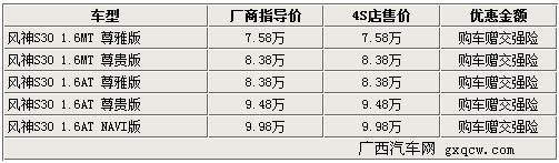 作為東風(fēng)風(fēng)神品牌下的首款家用轎車,風(fēng)神S30在今年上半年就已經(jīng)正式推出市場,但由于各種原因,很多4S店內(nèi)的現(xiàn)車并不齊。目前,東風(fēng)風(fēng)神S30隨著產(chǎn)能的不斷提高,全國各個4S店內(nèi)車型緊缺的情況已經(jīng)有所緩解。據(jù)了解,目前風(fēng)神S30雖然現(xiàn)車顏色仍不齊全,但仍可以滿足大部分消費(fèi)者的需求,并且出現(xiàn)了贈送交強(qiáng)險的優(yōu)惠政策。詳情如下: