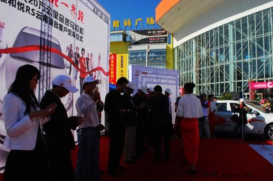 活動現(xiàn)場,兩排整齊擺放的和悅RS惹得行人紛紛駐足,有些人還忍不住拍照留念。這兩排車就是活動當(dāng)天要交付給云南首批用戶的20輛車。在活動結(jié)束后,到場的客戶即可將自己等待已久的愛車開回家,也將為和悅RS在昆明的銷售拉開大幕。