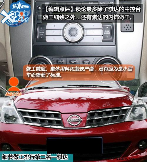 群眾的眼光是雪亮的,東風日產(chǎn)的車型確實在細節(jié)做工方面得到了很多車主的認可。騏達除了空間大省油之外,細節(jié)做工也成為車主夸贊的一個點。談論最多除了騏達的中控臺做工細致之外,還有騏達的內(nèi)飾做工。車主”英雄2189“在談感受時說道,騏達整體用料和裝嵌嚴謹,并沒有因為是小型車而降低了標準。車主”北山老翁A“在談到中控臺的時候說,中控臺使用很舒服,給人的感覺也很高檔。車主”Czar72“也說到騏達的真皮座椅和中控臺材質(zhì)和天籟一樣,質(zhì)感很好。