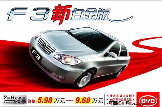 面對火爆的年底車市,F(xiàn)3新白金版?zhèn)鞒蠪3一貫的優(yōu)秀品質(zhì),再次沖擊中級車市,加之產(chǎn)能有保證,F(xiàn)3車型必將創(chuàng)造新的銷量奇跡。