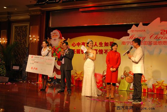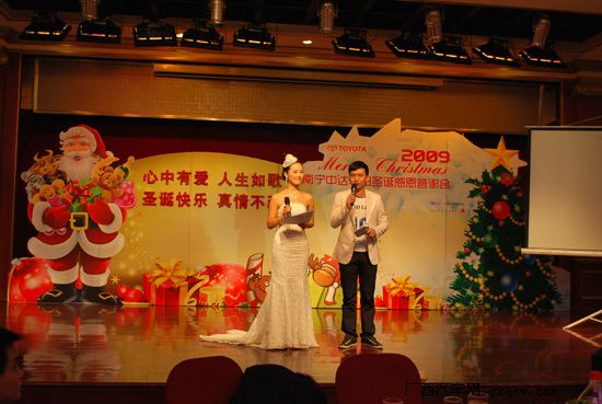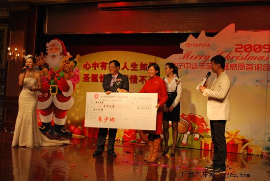 2009年12月24日晚,主題為“心中有愛,人生如歌;圣誕快樂,真情不改”的“南寧中達豐田圣誕感恩答謝晚會”隆重舉行。當(dāng)晚,來自政府相關(guān)部門領(lǐng)導(dǎo)、各兄弟單位、媒體嘉賓以及中達豐田尊貴客戶代表及中達豐田的員工們歡聚一堂,共同匯聚成歡樂的海洋!晚會現(xiàn)場精彩的表演及愛心捐助活動贏來滿場掌聲不斷,圣誕夜祥和、喜悅的氣氛始終彌漫整個活動現(xiàn)場。