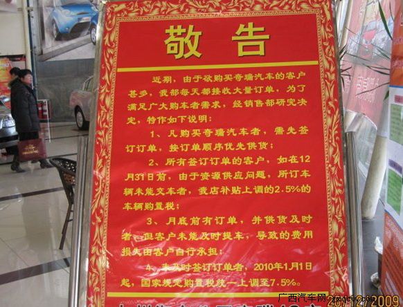 對此,記者對奇瑞A3 2010款在全國其余地區(qū)的銷售情況進行了了解。結(jié)果顯示,奇瑞A3 2010款在全國各地都甚為暢銷,在很多地區(qū)中已面臨脫銷的局面。針對目前的市場形勢,奇瑞汽車的相關(guān)負(fù)責(zé)人也表示,自2010款上市以來A3的銷量猛增,日銷量接近400輛。