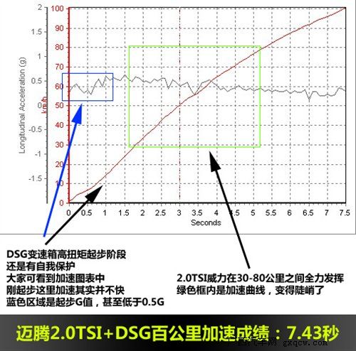 但邁騰2.0T自動(dòng)豪華型的出色性能表現(xiàn)是眾所周知的,只是前提是需要使用變速箱的S運(yùn)動(dòng)模式。在此模式下,油門踏板響應(yīng)更加積極,駕駛者稍微狠踩點(diǎn)油門,轉(zhuǎn)速就會(huì)達(dá)到4000—5000rpm。在這種狀態(tài)下我們實(shí)測(cè)了其0-100km/h加速能力,7.43秒的成績(jī)足以傲視絕大多數(shù)中型車。