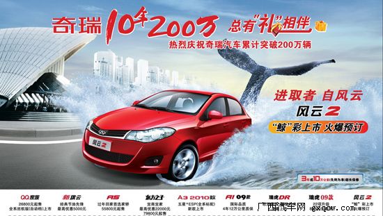 奇瑞10年200萬,總有禮相伴—2010年春季促銷活動已然開幕,堅信奇瑞將繼往開來,再創(chuàng)輝煌。