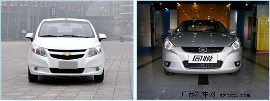 新賽歐(左)的前臉與科魯茲有些相似,前大燈采用眼角上挑式設(shè)計(jì),使引擎蓋和保險(xiǎn)杠上的兩條棱線造型過(guò)度自然,五邊形格柵中間隔斷上鑲嵌著金領(lǐng)結(jié)車(chē)標(biāo),延續(xù)了雪佛蘭新一代家族式設(shè)計(jì)風(fēng)格。而同悅(右)的整體外觀設(shè)計(jì)吸取了很多流行元素,U型前臉+大嘴是目前被采用最多的設(shè)計(jì)風(fēng)格,整體看上去運(yùn)動(dòng)感十足。