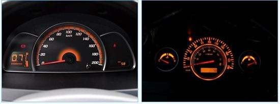 新賽歐的發(fā)動(dòng)機(jī)轉(zhuǎn)速表被設(shè)計(jì)成數(shù)字顯示方式,并且位于儀表盤(pán)左下方,看上去很新潮。而同悅的儀表盤(pán)設(shè)計(jì)也很獨(dú)特,它將速度表和轉(zhuǎn)速表設(shè)計(jì)成兩個(gè)同心圓,行駛時(shí)看著兩個(gè)指針相互追趕,會(huì)讓人充滿(mǎn)駕駛激情。