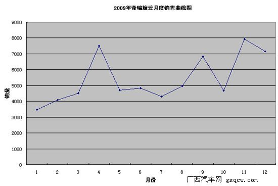 縱觀旗云2009年的銷售路線圖,1至3月,旗云著力部署09戰(zhàn)略,籌劃全局的同時(shí)就創(chuàng)下了12078輛的季度銷量,為09年博下頭彩。隨著節(jié)油系列賽事的展開以及大規(guī)模促銷活動(dòng)的進(jìn)行,旗云在第二、三季度的銷量分別達(dá)到了17058輛和16124輛,并在4月和9月創(chuàng)出了年度新高,穩(wěn)健的銷售力奠定了旗云全年戰(zhàn)績(jī)飄紅的基礎(chǔ)。毗鄰年關(guān),旗云季度銷量更上一層,幾近2萬(wàn),收官巨作完滿呈現(xiàn)。全年總計(jì)銷量65023輛,較2008年同比增長(zhǎng)24.7%,牛氣直沖云霄、銳不可當(dāng)。