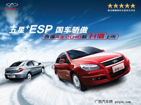 早在09款上市之時(shí),奇瑞A3便率先引入了這一配置,成為當(dāng)時(shí)十萬元內(nèi)唯一配備有ESP的車型。一年的時(shí)間中,ESP的風(fēng)潮愈演愈烈,得到了業(yè)內(nèi)外更多人士的關(guān)注。現(xiàn)今,2010款A(yù)3進(jìn)一步采用了全系標(biāo)配ESP的配置水平,再度成為十萬元以下家轎中唯一全系標(biāo)配ESP的車型,先后兩次開創(chuàng)了國內(nèi)緊湊型家用車市中的安全先河。