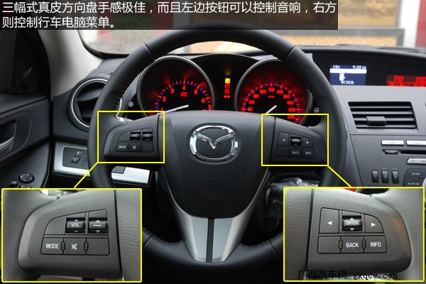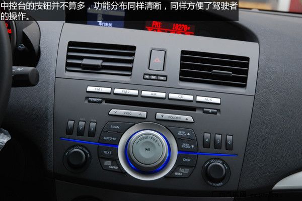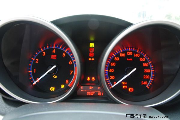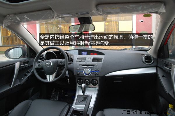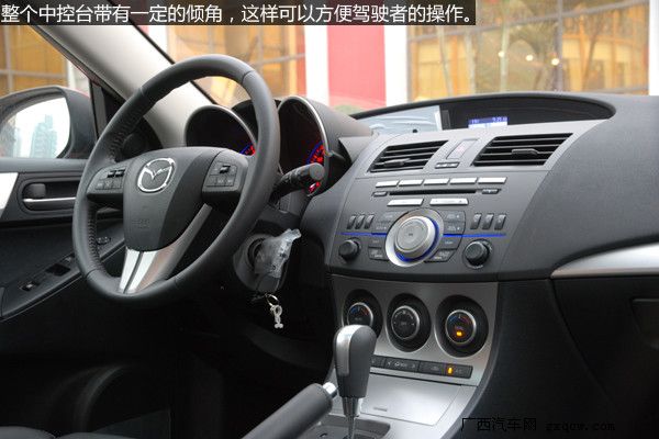 內(nèi)飾設(shè)計上馬自達(dá)3進(jìn)行了許多大膽的嘗試,中控面板整體上一致了馬自達(dá)6的風(fēng)格,層次感分明便于日常的使用。提供更富有質(zhì)感的內(nèi)飾是馬自達(dá)3的重點,黑色的內(nèi)飾更顯高檔,材質(zhì)也提供了良好的手感,銀色的多媒體按鈕很上檔次,而使用時手感同樣出色。橙色炫光的雙圓筒式儀表,相當(dāng)炫麗,我想有不少消費者會為之而傾倒。