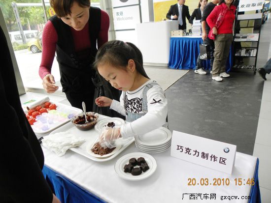 3月20日下午柳州粵寶在活動(dòng)現(xiàn)場(chǎng)為廣大客戶特別設(shè)立了一個(gè)巧克力制作區(qū),讓廣大車主體驗(yàn)親手制作巧克力的樂(lè)趣。伴隨著悠揚(yáng)的音樂(lè),看著店內(nèi)的巧克力色1系新車,手里制作著香濃的巧克力,頓時(shí)感覺(jué)我們的生活隨處都洋溢著浪漫的情愫。