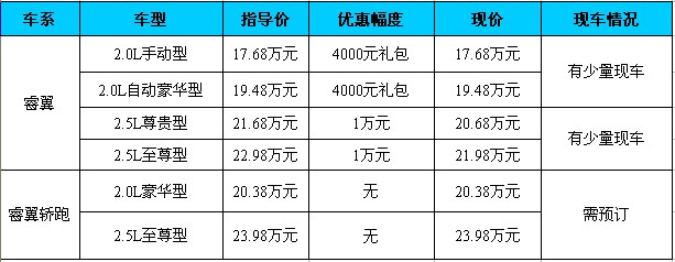 近日小編從鑫廣達一汽馬自達了解到2.5L睿翼在車展后依舊有優(yōu)惠,最高優(yōu)惠達1萬元,還有少許禮包贈送,具體要到店與銷售顧問洽談。