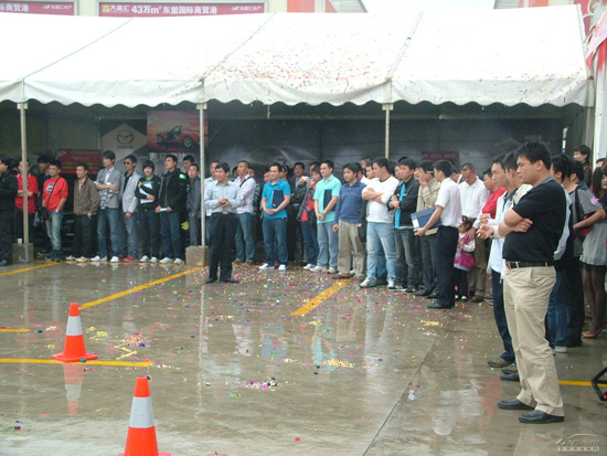 中國(guó)汽車聯(lián)合會(huì)的專業(yè)級(jí)賽車手的精彩表演吸引了所有人冒雨觀賞