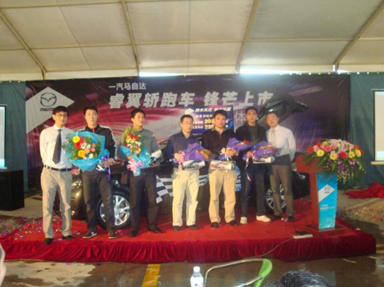 睿翼轎跑的上市發(fā)布會(huì)以及睿翼深度試駕會(huì)一并舉行,由廠家特請(qǐng)過來(lái)的中國(guó)汽車聯(lián)合會(huì)專業(yè)級(jí)賽車手,親自帶領(lǐng)客戶試乘試駕,活動(dòng)當(dāng)日雖然下著小雨,但車手的精彩表演讓全場(chǎng)都為之瘋狂!在專業(yè)級(jí)賽手的陪同下,很多車友都“放肆”的瘋狂了一把,更加深入的了解到了睿翼的超凡操控與舒適性,以及整體車身的穩(wěn)定性,更加堅(jiān)定了他們對(duì)一汽馬自達(dá)的信心;顒(dòng)當(dāng)天總計(jì)接受21個(gè)訂單!