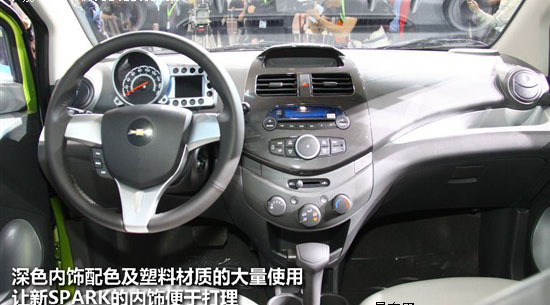 新Spark內(nèi)飾的設(shè)計(jì)在同級(jí)別小車中顯得非,F(xiàn)代。材質(zhì)、布局都顯得更加高端。藍(lán)色背光和整體式中控臺(tái)造型前衛(wèi)時(shí)尚,指針+液晶模擬顯示儀表盤看起來很有科技感,帶有花紋的座椅體現(xiàn)著其時(shí)尚年輕的產(chǎn)品定位,車內(nèi)的彩色裝飾面板也擁有不同的顏色供選擇。