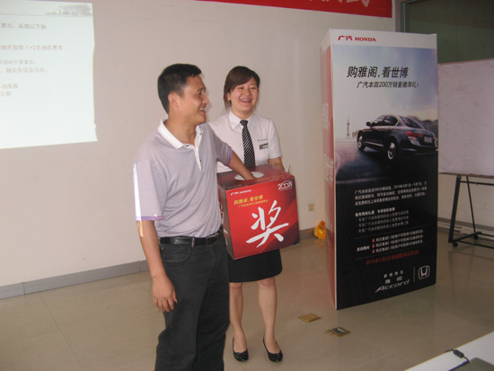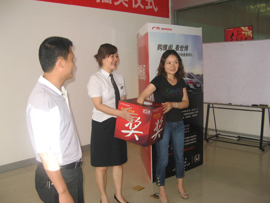 廣汽本田銷量突破200萬,雅閣銷量突破100萬之機(jī),為感恩用戶對雅閣品牌的支持,廣汽本田特舉辦了“購雅閣、看世博”的系列活動,應(yīng)廠家要求和廣大客戶的關(guān)注,5月8日下午15:00,恒安本田二樓VIP室,進(jìn)行了“購雅閣、看世博”抽獎儀式,十多組近期購買雅閣的客戶親自參與了此次活動,大家心里懸著的一塊“大石頭”終于落地了!