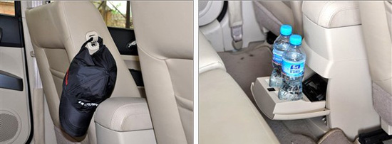 前排座椅提供承重3公斤的側(cè)面小掛鉤 后排杯座似乎設(shè)計的有點淺