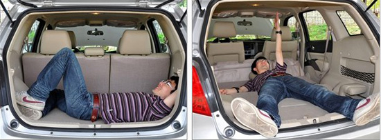 對于1.7米的筆者,騎士的后排頭部、腿部空間都比較寬裕;而將后排座椅完全放倒后,可擁有比較可觀的行李儲放空間。