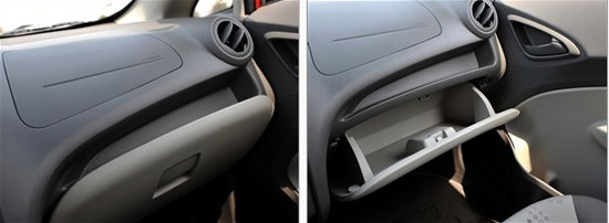 副駕駛手套箱的容積一般,但細節(jié)做工不錯,上方還有一個儲物格,可放置雨傘等。