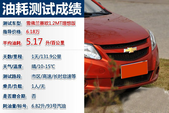 新賽歐1.2MT理想版在131.9km的測試里程消耗了6.82升93號汽油