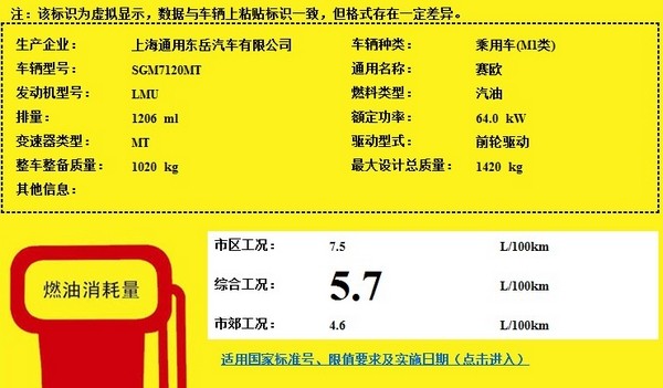 工信部公布的新賽歐1.2MT油耗,市區(qū)工況7.5L/100km,綜合工況5.7L/100km。