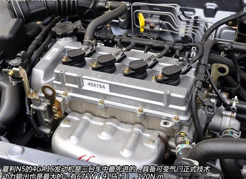 夏利N5搭載的是其自主研發(fā)的新款發(fā)動(dòng)機(jī)4GA1。這款1.3L發(fā)動(dòng)機(jī)的缸體蓋和機(jī)體部分組件采用了鋁鎂合金材料,比同級(jí)別的產(chǎn)品大概輕了20多公斤;靜音正時(shí)鏈條取代了驅(qū)動(dòng)皮帶,基本上終身免維護(hù)。而且其內(nèi)還采用了VCT-i(智能化連續(xù)可變凸輪正時(shí))技術(shù),使得馬力和扭矩在原先的基礎(chǔ)上有了一定提升,能在6000轉(zhuǎn)時(shí)輸出91馬力的最大功率,并在4400轉(zhuǎn)時(shí)就爆發(fā)出120Nm的最大扭矩,而且還保持了夏利一貫的低油耗特點(diǎn)。