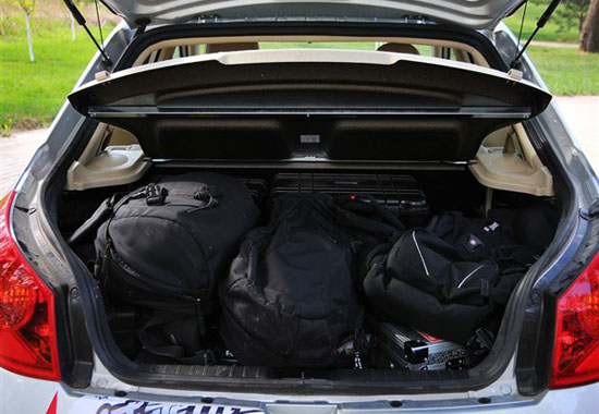 針對(duì)于以上兩種情況的綜合表現(xiàn)來(lái)看,三廂風(fēng)云2后備箱容積達(dá)到了450L,達(dá)到了更高一級(jí)車型是評(píng)價(jià)水平,而且由于采用了整體上掀的后備箱蓋板,所以在裝載能力方面要強(qiáng)于兩廂車;但由于受制于車身造型所限,在搬運(yùn)大件物品時(shí)三廂車還是不如兩廂車方便。因此我們給予三廂車的得分為“優(yōu)秀”,兩廂車“優(yōu)良”,在裝載能力上,三廂車總分贏。