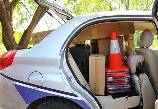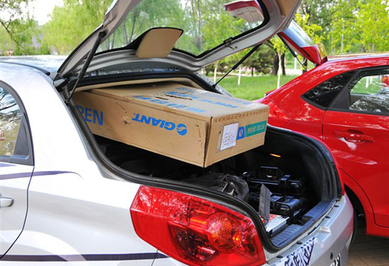 三廂車沒(méi)有完成任務(wù),這個(gè)大箱子裝進(jìn)去后,后備箱無(wú)法蓋嚴(yán)