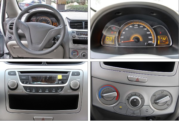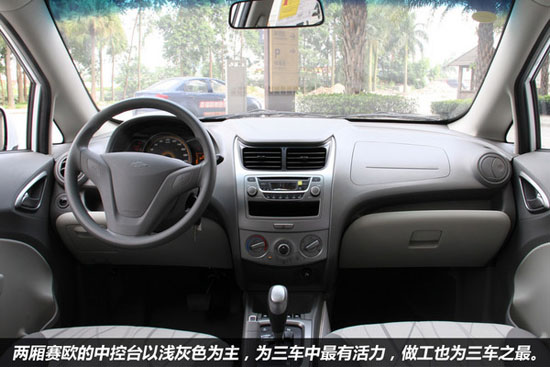 兩廂賽歐的內(nèi)飾以淺灰色為主,為三車中最有活力,做工也為三車之最,用料也是一樣的平凡,但新穎的設計加上精細的造工,得到的就是差距,合資品牌的造工依然值得自主品牌認真學習。