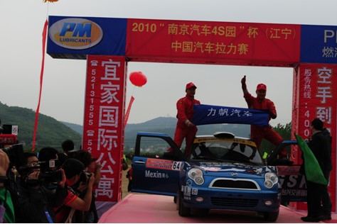 5月16日,在2010年全國(guó)汽車(chē)?yán)﹀\標(biāo)賽(CRC)南京站第一天的角逐中,力帆320車(chē)隊(duì)超水平發(fā)揮,新加盟的女車(chē)手王晶晶以0.002秒的成績(jī)戰(zhàn)勝長(zhǎng)安鈴木車(chē)隊(duì)女車(chē)手。在隨后300多公里的山區(qū)沙石路面比賽中,力帆320繼續(xù)神勇發(fā)揮,最終奪得女子組第一和車(chē)隊(duì)第二及1.4L個(gè)人第二、個(gè)人第三的好成績(jī)。