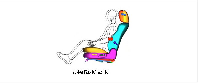 將頭枕設(shè)置在可減輕頸部損傷且可保持舒適性的最佳位置。后面碰撞時(shí),乘員的身體就會擠壓在靠背上,這使頭枕立即向前移動并支撐乘員頭部。