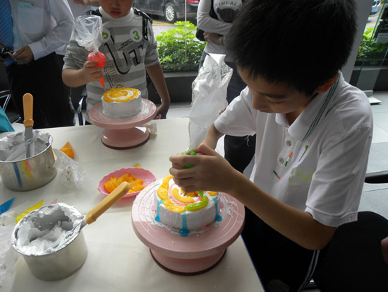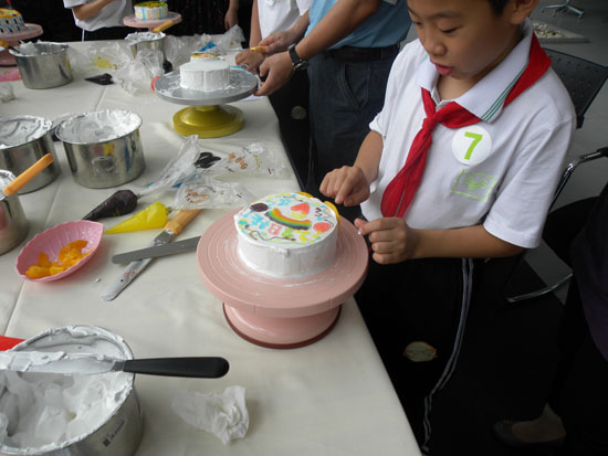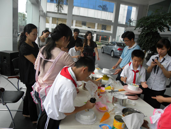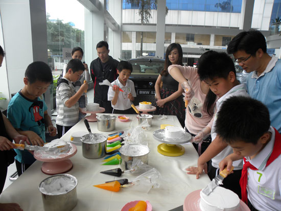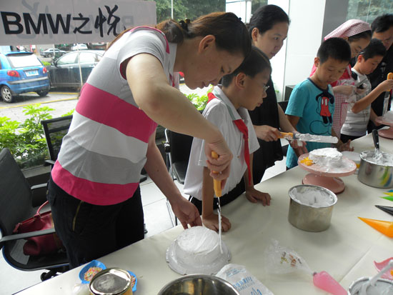 8、車主朋友們也親自上陣與孩子一同制作“親子蛋糕”