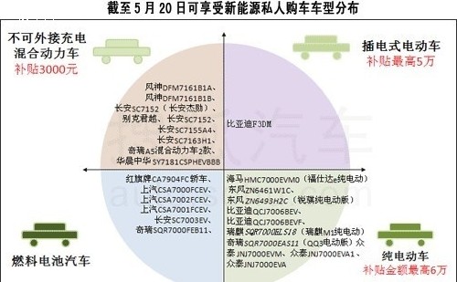 截至5月20日,《節(jié)能與新能源汽車示范推廣應(yīng)用工程推薦車型目錄》已公布11批車型目錄,列入公告的新能源汽車產(chǎn)品約為110個。篩選《推薦車型目錄》中的轎車車型為26款,按照《推薦車型目錄》對于推薦車型的分類,我們可以大致看出,截至5月20日,按照國家規(guī)定可以享受到不同額度新能源車私人購車補貼的新能源轎車車型分布如下: