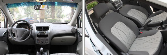 兩廂風(fēng)云2的內(nèi)飾仍然是三廂車型那般上深下淺的顏色搭配,看上去和同級小車區(qū)別不大,不過給人感覺很簡潔。和車頭理念相同,中控臺(tái)造型也同樣兼顧仿生學(xué),模仿了鯨魚尾鰭造型,這種風(fēng)格倒也可圈可點(diǎn),并且內(nèi)飾上還有一個(gè)特點(diǎn)就是采用左右兩側(cè)單獨(dú)顯示屏幕的設(shè)計(jì)。風(fēng)云2兩廂整體中控的布局在簡單大方之下也有一些新意,黑底白字的儀表盤顯示非常清晰,而且采用紅色指針,只不過材質(zhì)和做工仍然需要向合資對手學(xué)習(xí)。