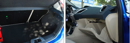 嘉年華兩廂版長(zhǎng)/寬/高分別為3950×1722×1467mm,尺寸在三車中擁有寬度的優(yōu)勢(shì),而軸距為2490mm,是比較標(biāo)準(zhǔn)的小型車身材?臻g方面,嘉年華的表現(xiàn)并不夠理想,盡管對(duì)前排椅背作出了凹入處理,但很多時(shí)候這種所謂運(yùn)動(dòng)車型在乘坐空間方面都不盡如人意。嘉年華的儲(chǔ)物能力處于同級(jí)別車型里中等水平,沒(méi)有什么出眾的設(shè)計(jì),但大多數(shù)常規(guī)該有的也都提供了,諸如后排座椅比例放倒功能就沒(méi)有缺失。