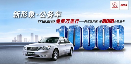 為了答謝近年來消費(fèi)者對(duì)江淮汽車的支持,廣西興弘店在6月1日到6月30日期間,推出“江淮賓悅免費(fèi)萬里行”,凡在活動(dòng)期間購買江淮賓悅的用戶,即可得到10000公里油卡的饋贈(zèng)。