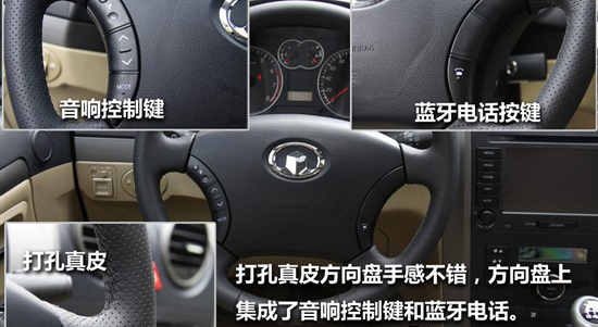 哈弗H5歐風(fēng)版采用了時(shí)下流行的上深下淺顏色搭配,營(yíng)造出溫馨的居家氛圍。打孔真皮方向盤的樣式與H3相比雖然基本沒(méi)變,不過(guò)做工大為提高,手感不錯(cuò)。測(cè)試車型為2.4L兩驅(qū)超豪華型,方向盤上集成了音響控制鍵和藍(lán)牙電話。另外值得一提的是真皮座椅質(zhì)地柔軟,手感很好。
