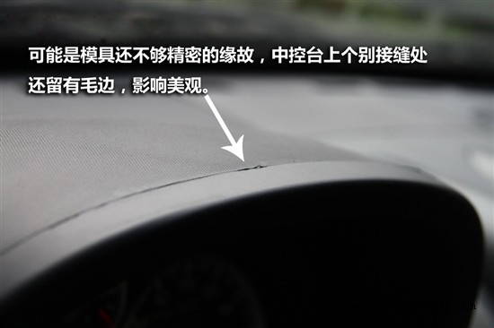 不過(guò)我們還是要說(shuō)說(shuō)哈弗H5歐風(fēng)版的不足,比如中控臺(tái)上方的材質(zhì)塑料感依然很強(qiáng)。另外可能是模具不夠精密的緣故,中控臺(tái)上個(gè)別接縫處還留有毛刺,影響美觀。