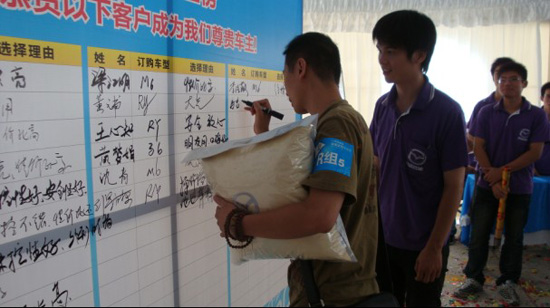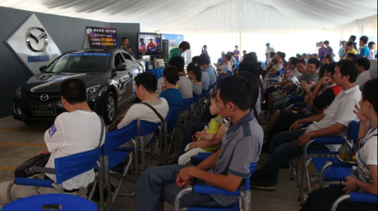 其次,活動(dòng)現(xiàn)場(chǎng)的氛圍非常好,參加活動(dòng)的人非常多,早早已經(jīng)有人到店簽到了。在活動(dòng)現(xiàn)場(chǎng)我跟小黃談?wù)叩臅r(shí)候,不斷傳來(lái)新車主產(chǎn)生的消息,火爆不已,我生怕自己談太久落下了。本來(lái)只是陪同我來(lái)做“軍師”的朋友,5月份的時(shí)候已經(jīng)定了一款A(yù)級(jí)車,但是聽了王總講課并參加了試乘試駕之后,他搶在我之前訂購(gòu)了一輛馬自達(dá)6,要回去退掉原來(lái)的車,呵呵,看來(lái)馬6的魅力可真不小。