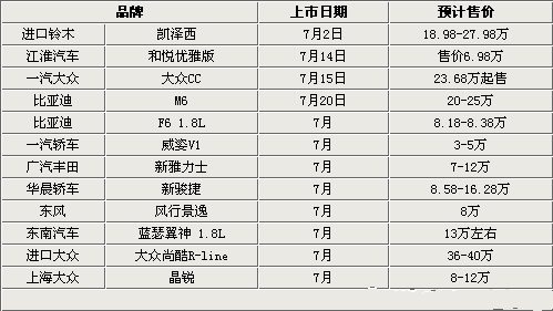 時間進入到7月份以后,我國大部分城市都已經(jīng)進入到了真正的夏天,伴隨著酷熱的天氣各大汽車廠商也紛紛選擇了盛夏時節(jié),發(fā)布他們的最新產(chǎn)品。據(jù)記者統(tǒng)計,在2010年7月份里來自國產(chǎn)和進口各類新車達到了12款之多,平均起來不到3天就有一款新車于我們見面。對于剛剛上市的新車,消費者的關(guān)注度自然是很高的,不過在關(guān)心他們的性價比之外,消費者最為關(guān)心的應該還是這些車型的市場行情究竟的怎樣的。