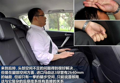內(nèi)飾方面,進(jìn)口馬自達(dá)3延續(xù)其家族風(fēng)格,中控臺(tái)的造型和布局都與睿翼有著異曲同工之妙,再加上炮筒狀儀表的襯托,顯得十分具有運(yùn)動(dòng)風(fēng)范。盡管2640mm的軸距在同級(jí)車(chē)中并不算差,但該車(chē)無(wú)論在前排還是后排都不堪理想,當(dāng)然復(fù)雜的多連桿后懸掛占用了一定的后排空間也是原因之一。
