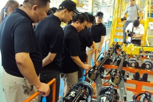大家認真觀看懸架安裝工位