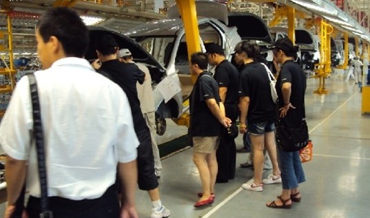 游客們在工作人員的引導(dǎo)下,進入總裝車間,參觀了東風(fēng)風(fēng)神S30、H30的整個生產(chǎn)裝備流程,充分感受到現(xiàn)代化汽車生產(chǎn)的嚴格程序和精細工藝。整個生產(chǎn)過程,現(xiàn)代化程度很高,隨處可見機械手在忙碌地工。