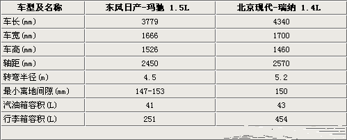 東風日產瑪馳和北京現(xiàn)代的瑞納是兩款完全不同風格的車型,如果說瑪馳是可愛的小姑娘的話,那么瑞納就可以算是一個帥氣的小伙。從上表我們可以看出,瑞納無論是車身尺寸還是軸距都要大于日產的瑪馳,但是瑪馳的高度要高于現(xiàn)代的瑞納,意味著它的頭部空間將比較寬敞。瑪馳是一款兩廂車型,所以在行李箱空間方面明顯要小于瑞納,存儲空間僅為251升,瑞納的行李箱空間達到了454升。由于車身的小巧,兩款車型的轉彎半徑都在5.5米以內,尤為適合目前擁堵道路和停車困難的情況,尤其是瑪馳,4.5米的轉彎半徑。