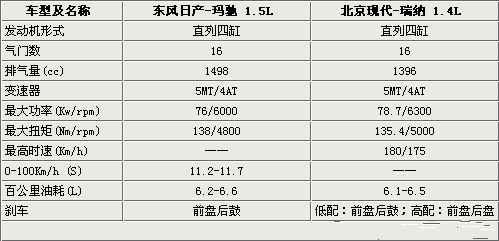 北京現(xiàn)代瑞納搭載的是1.4L和1.6L兩款不同的發(fā)動機,我們選取的是低排量1.4L的車型與日產瑪馳車型進行對比(瑪馳全系車型均搭載的是1.5L發(fā)動機)。兩款車型都配備的是直列4缸16氣門的引擎。兩款車型的動力性能在同級車型中屬于中規(guī)中矩的,完全可以應對人們的日常需求。至于油耗方面,瑞納和瑪馳的百公里油耗均在6.5個有左右,絕對可以稱得上經濟省油。瑞納在1.4L高配車型上配備了前后盤式剎車,低配車型則是前盤后鼓式剎車,瑪馳全系車型均是前盤后鼓式剎車。